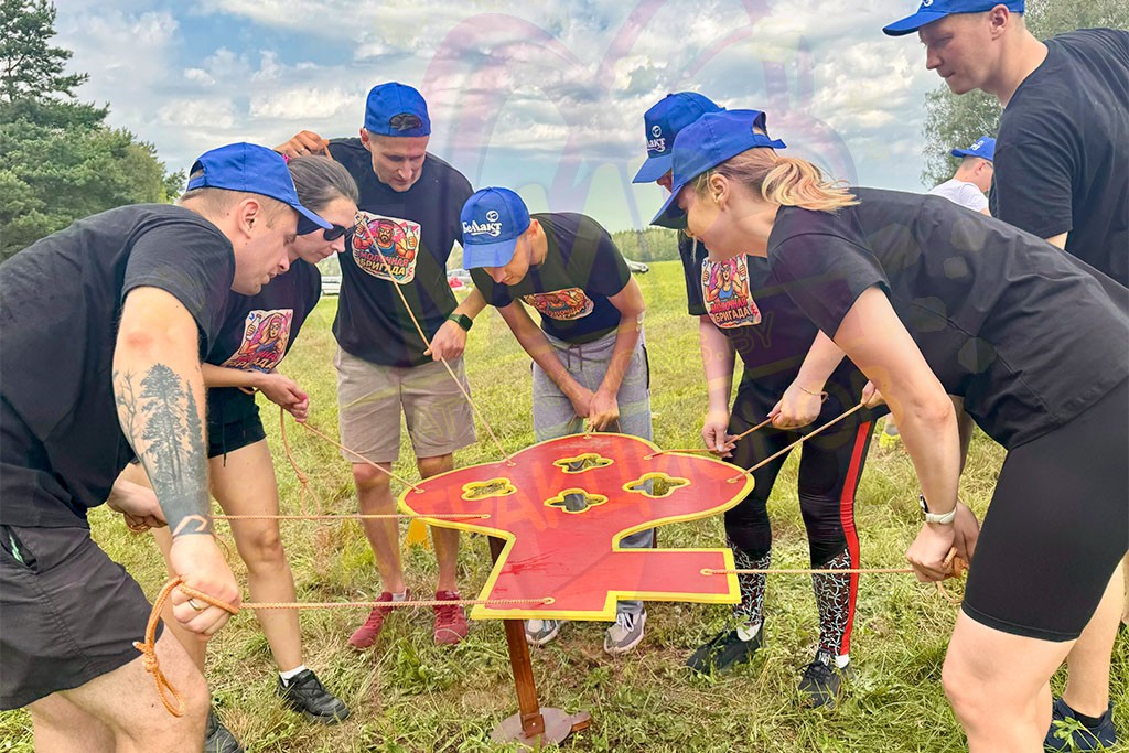 Захватывающая игра станет отличным дополнением офисного тимбилдинга или этапом спортивного праздника. Здесь не требуется особых физических данных: упор – на координацию сил в группе!